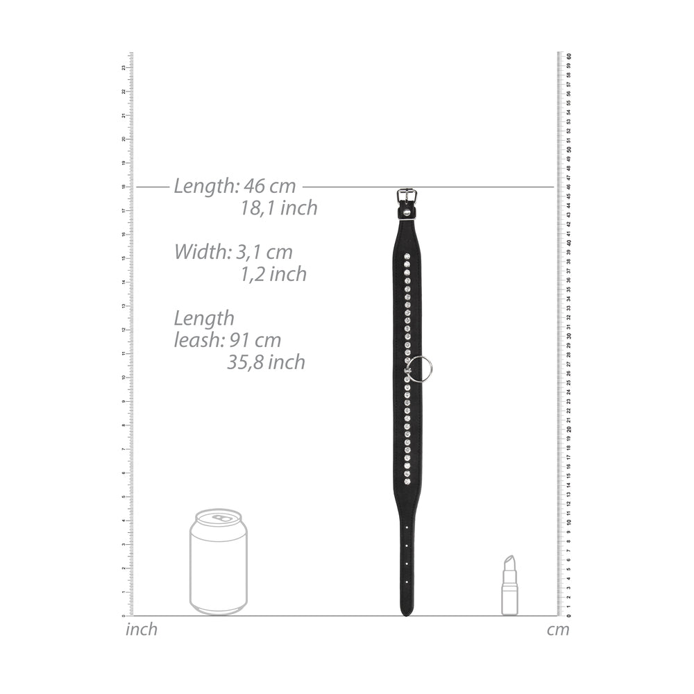 Get ready to please or receive in the intense Diamond BDSM line. Glamorously tough, the perfect combination of firm faux leather and glamourous diamond studs will turn you into the star attraction of the night. Collar and claim this adjustable Collar is gorgeous on its own but is even better with the Leash. The Collar offers 4 different sizes and has a sturdy, yet comfortable feel. The Leash offers the right amount of movement for both comfort and restraint. A Collar and Leash are unmissable in your BDSM chest. The perfect addition to a very hot kind of trouble it is time to set your dark side free.