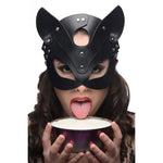 Act out your animalistic fantasies with the Naughty Kitty mask. Slip it on for a frisky foray with friends, or private party with your partner. They will be eager to make you purr as you slink around like a well-behaved pet or a feral feline. The vegan-friendly material may be cruelty-free, but that does not mean you have to be! The nickel-free metal studs and the adjustable strap ensure that it is compatible with most people, or rather, cats. Designed with raw sex appeal in mind, the ears and cut-outs are flattering and irresistible. Mask is 9.25 inches in width. 7.25 inches in height. Strap adjusts from 22 to 17 inches in circumference.